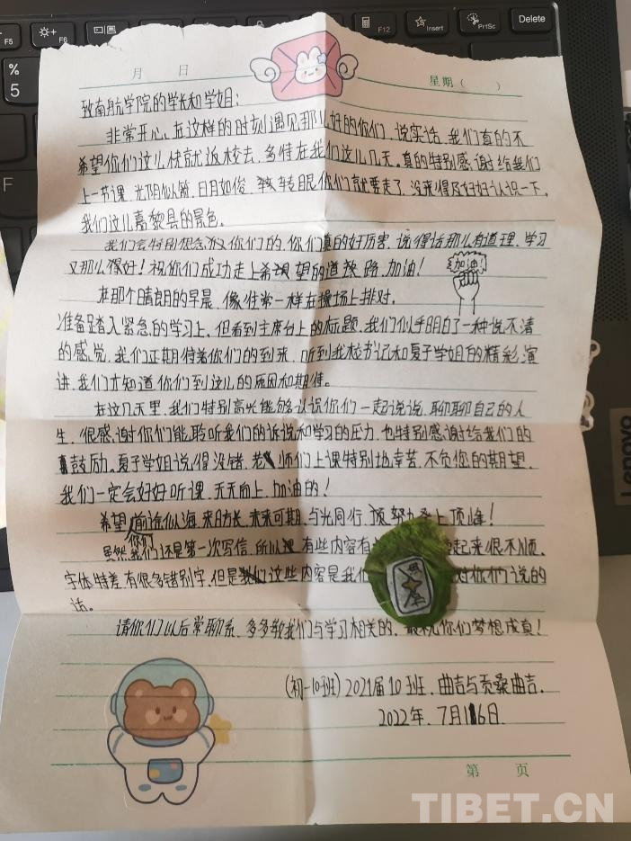 此次嘉黎之行,讓我真切地感受到了西藏同胞的純樸、熱情、善良。孩子們課堂上的認真思考、仔細演算、積極回答都給我們留下了深刻的印象。我們一起過林卡,一起吃飯,到家里做客……無數(shù)的言行舉止之間都流露出他們的講禮貌、重禮儀。我們也結(jié)識了為這片熱土奉獻多年青春的公安政委、校長、書記等等,正是他們的無私付出,讓雪域高原欣欣向榮,富強美麗。未來,我們也將與嘉黎縣中學(xué)建立長期的合作,號召更多南航學(xué)子為當?shù)貛ハM猓?/p>