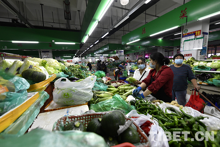 發(fā)布會后,記者掃碼、測溫后進入拉薩市柳梧農(nóng)貿(mào)市場進行實地探訪。農(nóng)貿(mào)市場外,市民自覺遵守疫情防控措施,有序進入;農(nóng)貿(mào)市場內(nèi),經(jīng)營者和前來購物的市民均佩戴好口罩,選購產(chǎn)品。不管是肉類區(qū)、蔬菜區(qū),還是水果區(qū)、水產(chǎn)區(qū)均供應(yīng)充足,未出現(xiàn)斷檔缺貨現(xiàn)象,價格相較以往并無較大波動。(中國西藏網(wǎng) 記者/王媛媛)