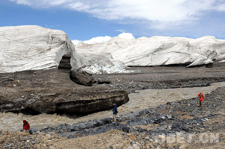 我們所觸摸的普若崗日冰川面積為422平方公里,冰原表面平坦,呈西北東南方向條形分布。冰原向四周山谷放射,溢出50多條長(zhǎng)短不等的冰舌,最低處海拔5350米,最高海拔6800多米。