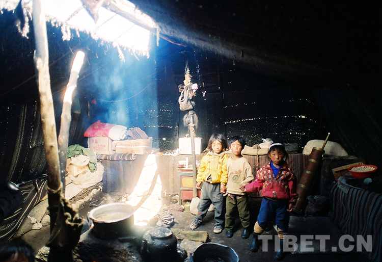 這是那曲地區(qū)(現(xiàn)那曲市)尼瑪縣一戶(hù)牧民人家的孩子在牛毛帳篷里玩耍(唐召明1996年攝)