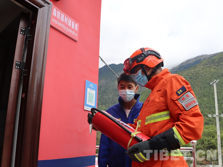 圖為消防員檢查林業(yè)管護(hù)站消防器材