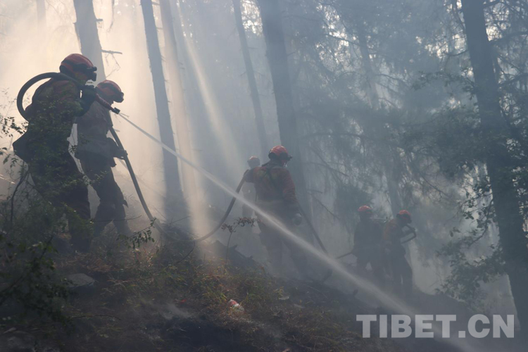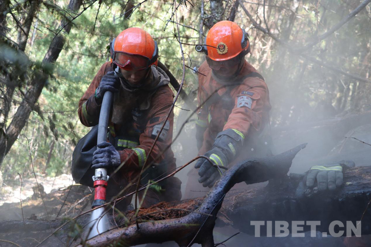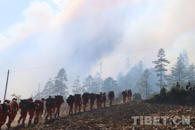 火場上,不說有感天動(dòng)地的故事,但是那種“無畏火魔、不怕犧牲、舍我其誰、團(tuán)結(jié)協(xié)作”的故事卻到處可見。那天,我們?cè)诮泳?,第一時(shí)間趕赴現(xiàn)場,當(dāng)看到一條長長的火線猶如一條蜿蜒的巨龍盤旋在空檔村山腰,火舌在大風(fēng)助威下翻滾著向南側(cè)撲去時(shí),飛哥和我各帶領(lǐng)10名黨員骨干以南北兩翼夾擊的陣勢(shì)迎戰(zhàn)火魔。在高達(dá)2800米的原始林區(qū),夜里溫度接近-5℃,槍頭手高琪已全身上下濕透并伴隨冰片的出現(xiàn),隱約透著讓人冷顫的寒光,顫抖的身體讓槍頭不斷左搖右擺,但他毅然肩扛槍頭,勇斗火魔。撲救完畢后,剛要準(zhǔn)備休整,中隊(duì)接到殲滅山頂火點(diǎn)的任務(wù),火情就是命令,指戰(zhàn)員背著沉重的裝備在近70-80度的亂石陡坡上,抓著樹枝一步步向上攀爬,16年兵齡的王建紅在爬山過程中使勁喘息,即使空氣中彌漫著飛舞的灰,也為吸取更多的氧氣保持體力;接近山頂時(shí),一顆直徑約80cm的滾石從山頂滾落,體型弱小的二級(jí)消防士曹橋在緊促的避險(xiǎn)哨音中采取緊急避險(xiǎn)措施成功躲避,滾石與他擦肩而過,但危險(xiǎn)的環(huán)境未能抑制他戰(zhàn)斗的決心。中隊(duì)指戰(zhàn)員暢談此次滅火作戰(zhàn)感受時(shí),都紛紛笑言:“我們從海拔2300米打到了3700米,相當(dāng)于從察隅到了拉薩?!?1日,中隊(duì)轉(zhuǎn)戰(zhàn)火場西南線,此時(shí)經(jīng)過5天的連續(xù)奮戰(zhàn),指戰(zhàn)員的思考能力和興奮的感覺消失殆盡,只剩下機(jī)械式行走的軀體,膝蓋有舊傷的戰(zhàn)斗班班長王明因?yàn)槌?fù)荷運(yùn)動(dòng)已疼痛難忍,但他在咬牙堅(jiān)持。班長宋遠(yuǎn)金、扎西歐珠主動(dòng)擔(dān)當(dāng)不畏艱險(xiǎn),從不到2300多米的地方,背著滅火裝備和滿滿的水桶,爬到4000米的山頂排除隱患,清理煙點(diǎn)。