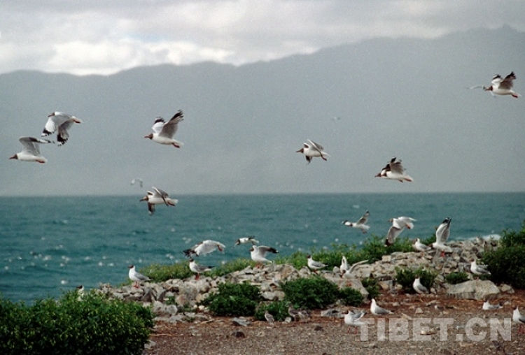 這是在藏北高原班公錯鳥島棲息的棕頭鷗(唐召明1995年攝)