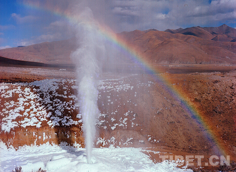 這是正在噴發(fā)的羊八井地?zé)峋ㄌ普倜?/span>1991年攝)
