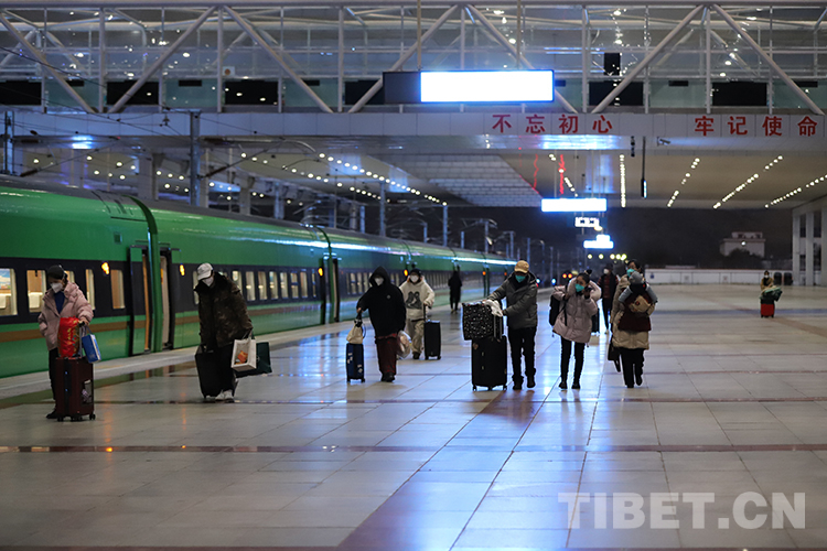 圖為11月21日清晨,旅客在拉薩火車站站臺(tái)準(zhǔn)備乘車 攝影:李海星