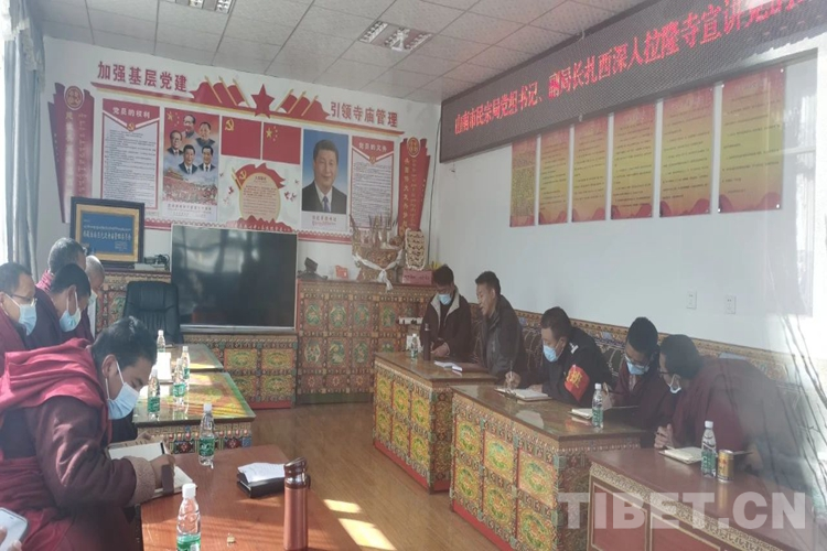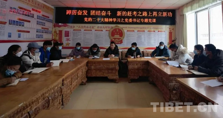 圖為洛扎縣拉郊鄉(xiāng)開展題為“踔厲奮發(fā)團(tuán)結(jié)奮斗,新的趕考之路上再立新功”的黨的二十大精神學(xué)習(xí)之黨委書記講黨課活動(dòng)。