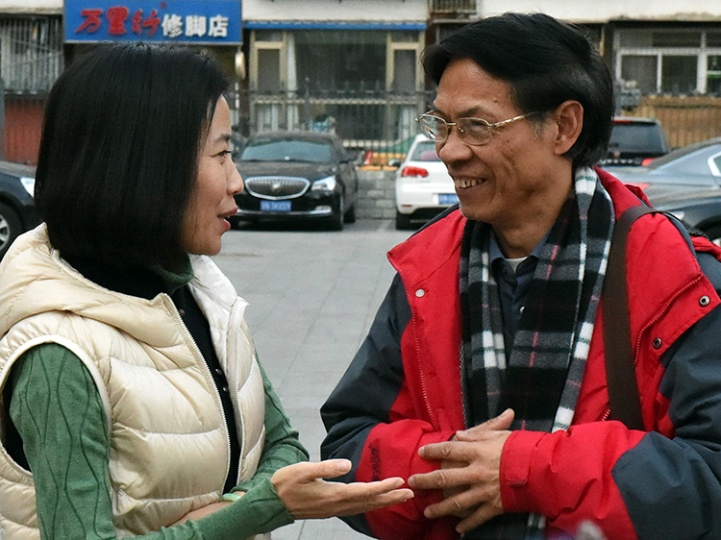 這是黃綿瑾(右)與中國評劇院院長侯紅(左)就評劇藝術(shù)進(jìn)行交流(唐召明2017年11月26日攝)