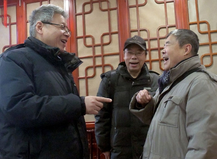 這是北京建藏援藏工作者協(xié)會(huì)原會(huì)長范小建(左)、原副會(huì)長羅廣武(中)和李業(yè)壯(右)在暢談西藏往事(唐召明2019年12月26日攝)
