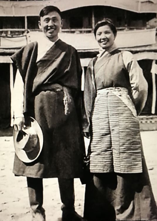 這是盛瑞玲與丈夫李正大在那曲地區(qū)工作時(shí),著藏裝拍照留念(唐召明提供,1964年攝)