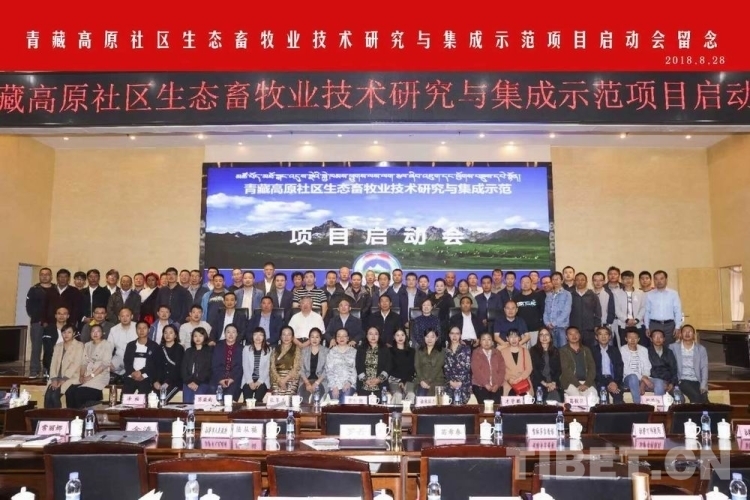 圖為2018年8月“青藏高原社區(qū)生態(tài)畜牧業(yè)技術(shù)研究與集成示范”項(xiàng)目啟動(dòng)會(huì)的會(huì)議合影。該項(xiàng)目是西藏科研團(tuán)隊(duì)承擔(dān)的科技部重點(diǎn)研發(fā)項(xiàng)目