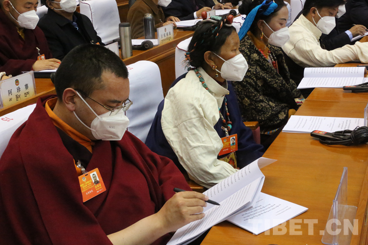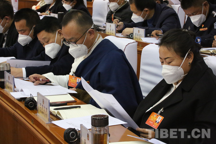圖為嘎瑪澤登代表政協(xié)第十一屆西藏自治區(qū)委員會常務委員會向大會報告工作 攝影:王佳豪