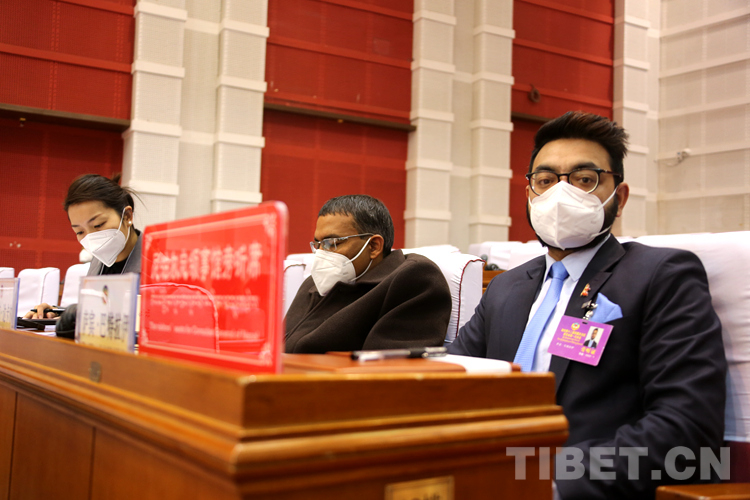 圖為尼泊爾駐拉薩總領事納瓦拉杰·達卡爾、領事薩賓·巴特拉伊旁聽會議 攝影:王佳豪