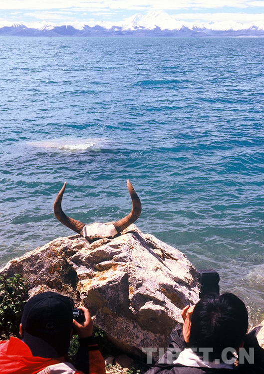 這是游客在拍攝納木錯和遠(yuǎn)處綿延的念青唐古拉山美景(唐召明2001年攝)