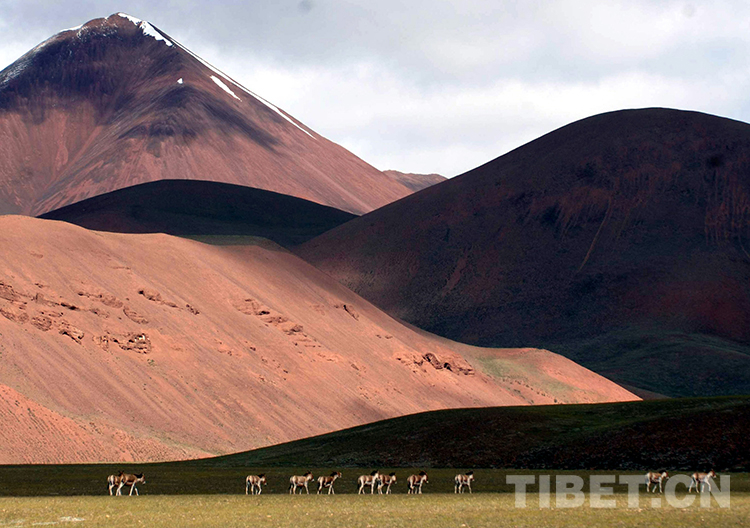 這是藏北高原的紅山脈與國家一級保護動物藏野驢(唐召明2009年攝)