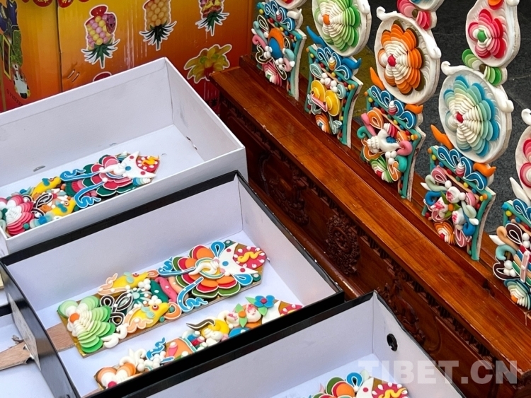 圖為年貨市場里的“孜卓”(酥油花) 攝影:德吉卓瑪