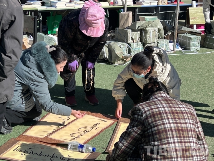 圖為書法家為群眾書寫新年祝福(書寫內容:扎西德勒) 攝影:德吉卓瑪