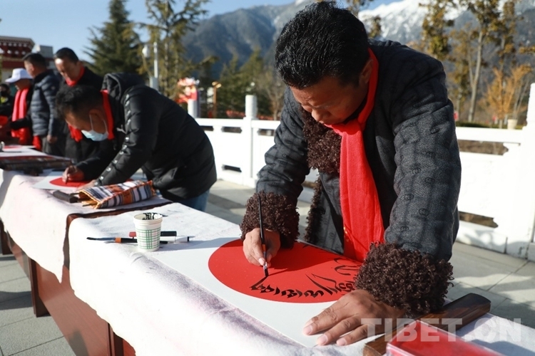 在林芝市藏醫(yī)院工作的巴桑次仁,是林芝市文聯(lián)書(shū)法家協(xié)會(huì)會(huì)員。當(dāng)天一大早,林芝市文聯(lián)書(shū)法家協(xié)會(huì)的各位書(shū)法家揮毫潑墨,不停地為群眾寫下新年祈福和愿望。現(xiàn)場(chǎng)群眾簇?fù)碛^摩,與書(shū)法家們認(rèn)真交流,臉上不時(shí)揚(yáng)起幸福的笑容。據(jù)悉,活動(dòng)當(dāng)天,書(shū)法家協(xié)會(huì)共送出100余副春聯(lián)、150余幅字畫(huà)。