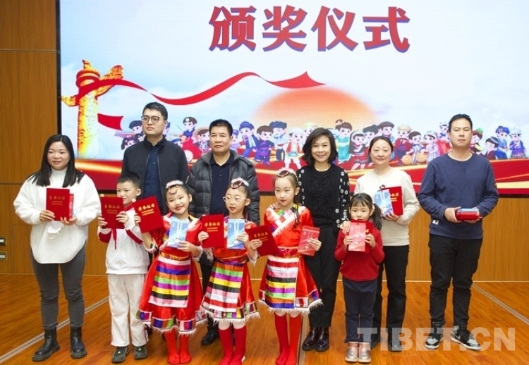 西藏文化博物館負(fù)責(zé)人扎呷、中國人民大學(xué)附屬中學(xué)第二分校校長龔月萍先后致辭?;顒?dòng)中,中國藏學(xué)研究中心西藏文化博物館向捐獻(xiàn)西藏主題作品的畫家吳茜女士頒發(fā)證書,并發(fā)布關(guān)于涉藏文物捐贈(zèng)的倡議書。同時(shí),為“童心永向黨,喜迎二十大”少年兒童書畫作品展的活動(dòng)組織者、指導(dǎo)老師以及獲獎(jiǎng)小作者頒發(fā)了獎(jiǎng)品和證書。