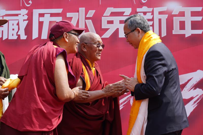 陳松大使表示,2023年是全面貫徹落實黨的二十大精神開局之年,是邁上全面建設(shè)社會主義現(xiàn)代化國家新征程的起步之年,中國駐尼使館將繼續(xù)踐行“以人民為中心”的發(fā)展思想和“外交為民”宗旨,竭誠為廣大藏胞提供服務(wù)、排憂解難。希望藏胞們繼續(xù)堅定維護(hù)國家統(tǒng)一和民族團(tuán)結(jié),努力支持祖國建設(shè)發(fā)展,并為推動中尼關(guān)系發(fā)展做出新的積極貢獻(xiàn)。陳松大使最后祝愿廣大在尼藏胞身體健康、家庭幸福、吉祥如意,羅薩扎西德勒!