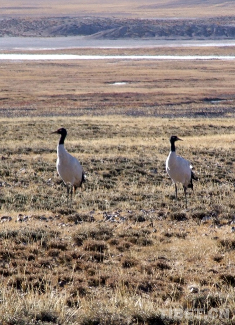 這是棲息在申扎縣濕地的國(guó)家一級(jí)保護(hù)動(dòng)物黑頸鶴(唐召明2006年攝)
