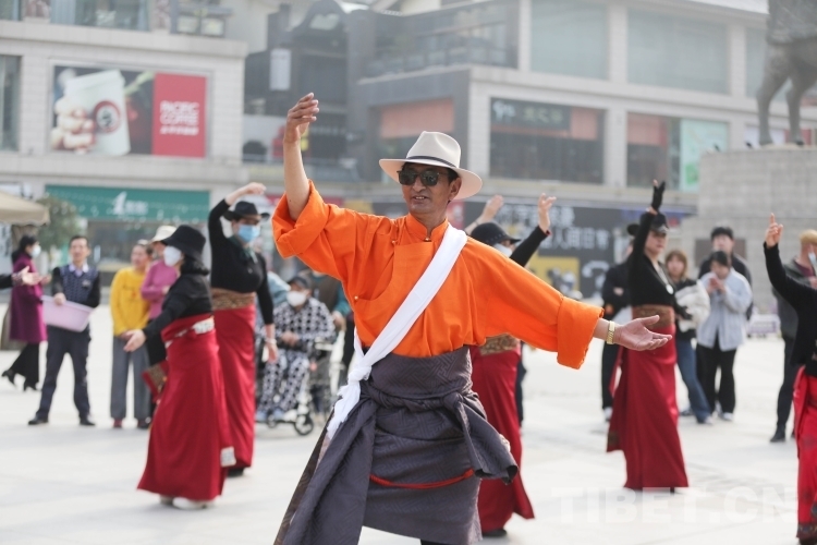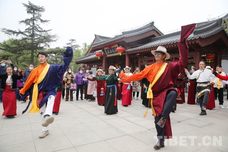 在大唐西市、興慶宮公園等地,沙多等多位藏舞推廣傳承人與西安當(dāng)?shù)劐伹f舞團(tuán)隊交流展演,現(xiàn)場氣氛熱烈。
