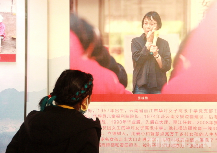 在眾多參觀展覽的人群中,有一位身著藏裝的西藏基層?jì)D聯(lián)干部,十分醒目,她總是笑意盈盈,用手機(jī)拍攝記錄著展覽的重點(diǎn),時(shí)不時(shí)與同伴分享心得。她叫索朗德吉,是來(lái)自西藏自治區(qū)林芝市工布江達(dá)縣江達(dá)鄉(xiāng)太昭村的婦聯(lián)主席,“通過(guò)觀看展覽,我系統(tǒng)了解到,百年來(lái),我們黨始終堅(jiān)持把實(shí)現(xiàn)婦女解放和發(fā)展、實(shí)現(xiàn)男女平等寫在自己奮斗的旗幟上?,F(xiàn)在的西藏,男女平等,婦女也能當(dāng)領(lǐng)導(dǎo),在工作崗位上展現(xiàn)著‘婦女能頂半邊天’的巾幗力量。這事兒如果放到舊西藏,那是想都不敢想的?!彼骼实录f(shuō),“在中國(guó)共產(chǎn)黨的領(lǐng)導(dǎo)下,我們村早已發(fā)展成為天上有航線,地面有鐵路,生活富裕的小康村,聽(tīng)黨話、跟黨走是太昭人不變的信念,回去后我要把聽(tīng)到的、看到的、學(xué)到的,不光講給村里人,更要講給縣里人,激發(fā)出她們的民族自豪感,共同澆灌民族團(tuán)結(jié)的參天大樹(shù)?!?/p>