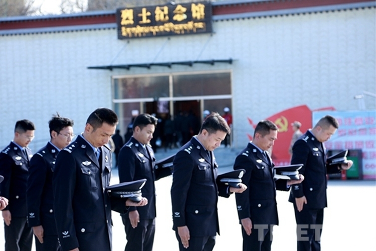 圖為西藏邊檢總站執(zhí)法調(diào)查支隊民警向烈士默哀
