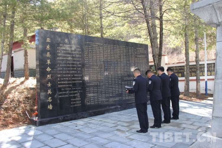 圖為西藏邊檢總站執(zhí)法調(diào)查支隊執(zhí)法調(diào)查七隊民警向亞東縣革命烈士英名墻默哀 攝影:李渠成