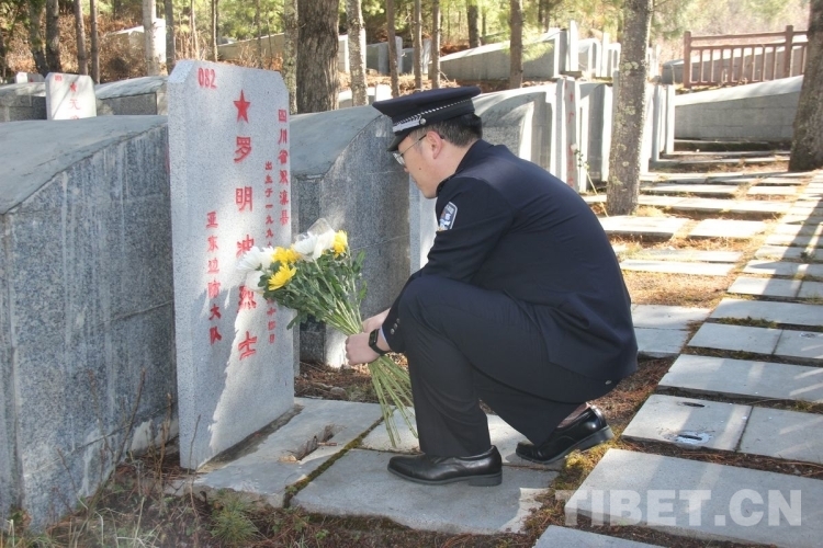 圖為西藏邊檢總站執(zhí)法調(diào)查支隊執(zhí)法調(diào)查七隊民警向烈士敬獻鮮花 攝影:李渠成