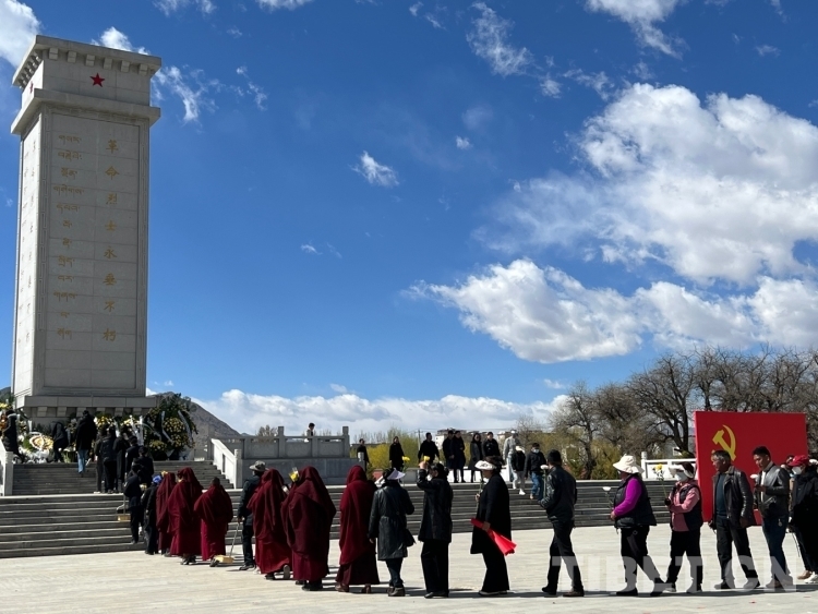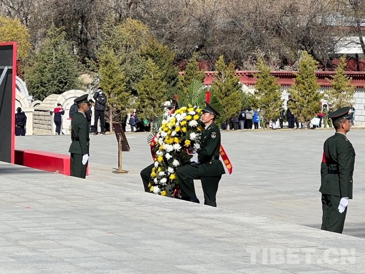 圖為社會(huì)各界人士向革命先烈敬獻(xiàn)鮮花 攝影:德吉卓瑪