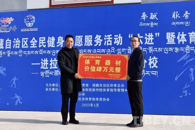 活動(dòng)開幕式現(xiàn)場(chǎng),西藏自治區(qū)體育局社體中心向拉薩市實(shí)驗(yàn)小學(xué)東城分校,配發(fā)了價(jià)值四萬元整的校園體育器材,保障學(xué)生日常體育運(yùn)動(dòng)需要。