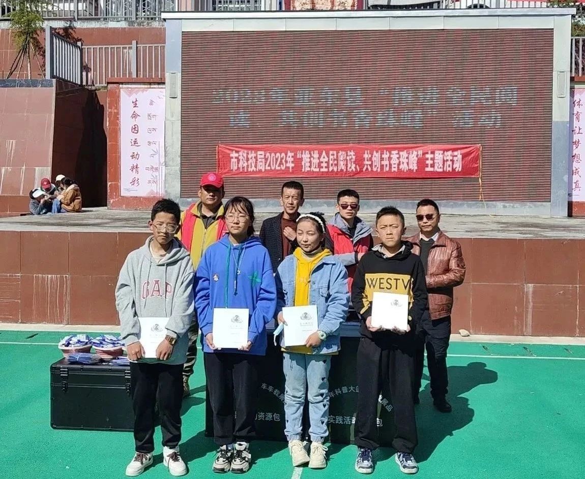 圖為日喀則市科學(xué)技術(shù)協(xié)會(huì)以科普大篷車進(jìn)校園活動(dòng)為契機(jī),聯(lián)合亞?wèn)|縣委宣傳部、縣科技局在縣中學(xué)舉辦的“推進(jìn)全民閱讀 共創(chuàng)書香珠峰”主題宣傳活動(dòng)現(xiàn)場(chǎng)