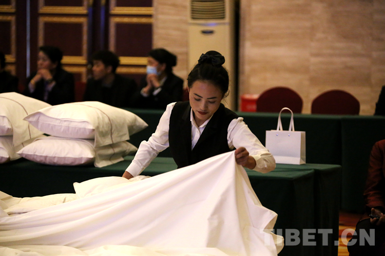 中國西藏網(wǎng)訊 5月11日,由西藏自治區(qū)旅游發(fā)展廳、西藏自治區(qū)總工會、共青團(tuán)西藏自治區(qū)委員會、西藏自治區(qū)婦女聯(lián)合會主辦,西藏旅游飯店業(yè)協(xié)會承辦的2023年西藏自治區(qū)星級飯店從業(yè)人員服務(wù)技能競賽在拉薩開賽。45名選手圍繞中餐宴會擺臺、西餐宴會擺臺、中式鋪床及夜床服務(wù)、前廳服務(wù)4個項目同臺競技。