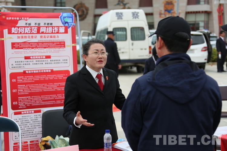圖為拉薩市中級人民法院工作人員為群眾答疑解惑 攝影:王佳豪