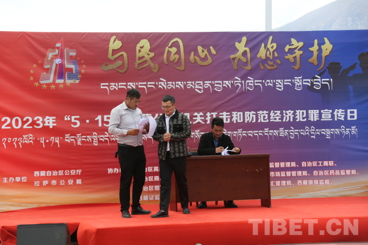 拉薩市是今年西藏“5?15”打擊和防范經(jīng)濟(jì)犯罪宣傳活動(dòng)的主展示地。記者在拉薩市集中宣傳活動(dòng)現(xiàn)場看到,各參加單位、部門、企業(yè)采取發(fā)放宣傳資料物品、講解各類常見經(jīng)濟(jì)犯罪類型、教授辨識(shí)假冒偽劣產(chǎn)品知識(shí)、傳授防騙打假經(jīng)驗(yàn)、為群眾答疑解惑等形式,集中宣傳了養(yǎng)老詐騙、合同詐騙、非法集資、傳銷以及如何識(shí)別假煙、假酒、假機(jī)油等。