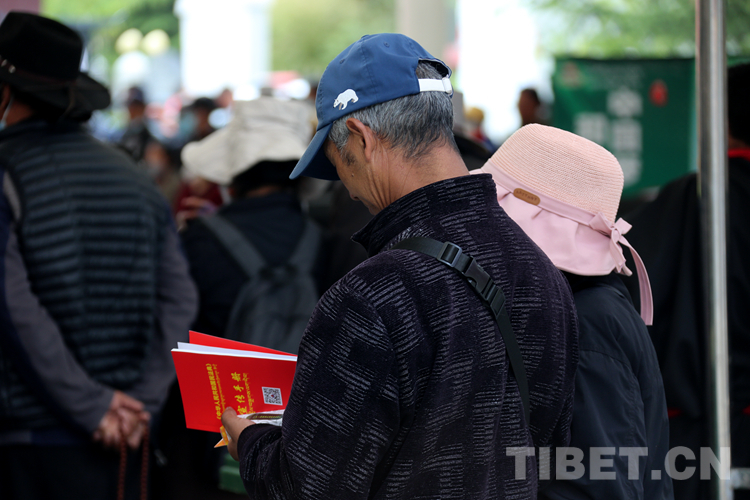 圖為一名群眾正在仔細(xì)閱讀剛剛領(lǐng)取的宣傳手冊(cè) 攝影:王佳豪