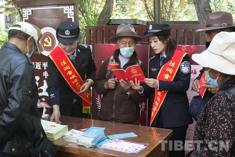 圖為西藏邊檢總站執(zhí)法調(diào)查支隊(duì)組織民警開展“2023民法典進(jìn)公園”主題宣傳活動(dòng) 攝影:仁青旺堆
