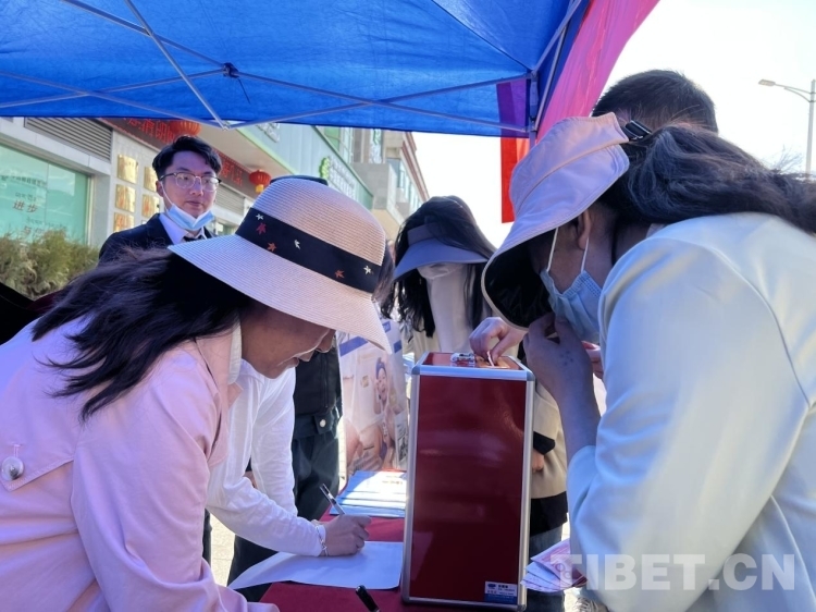 啟動(dòng)儀式結(jié)束后,在場愛心人士紛紛前往捐贈(zèng)點(diǎn)拿出現(xiàn)金和掃指定二維碼進(jìn)行現(xiàn)場捐贈(zèng)?!敖裉煸诂F(xiàn)場,我也捐贈(zèng)了一個(gè)‘母親郵包’,就是想盡我的綿薄之力為西藏婦女的健康和生活貢獻(xiàn)一點(diǎn)力量?!睆埮空f。