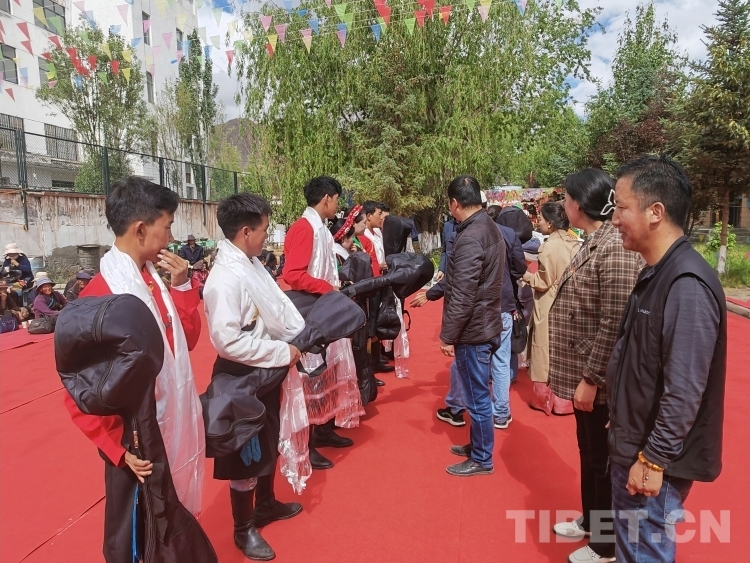 活動(dòng)現(xiàn)場(chǎng),學(xué)生家長代表向?qū)W校贈(zèng)送錦旗并發(fā)表感言。“感謝拉孜縣9+X中職學(xué)校培養(yǎng)了我的孩子,經(jīng)過學(xué)校的精心培養(yǎng),讓家人操碎心的孩子如今依靠從學(xué)校學(xué)到的技藝找到了一份滿意的工作,這讓我一家人感到很欣慰?!睂W(xué)生家長代表白瑪有感而發(fā),“希望在場(chǎng)的孩子們也通過發(fā)揮自己的優(yōu)勢(shì),在社會(huì)上找到一份心儀的工作,同時(shí)真心祝福學(xué)校越辦越好。”