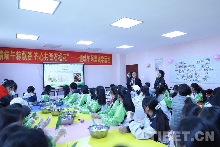 端午節(jié)當(dāng)天,拉薩阿里地區(qū)高級中學(xué)開展“濃情端午粽飄香 齊心共育石榴花”端午節(jié)融學(xué)活動,讓師生們在互動的氛圍中感受傳統(tǒng)文化,傳承民族精神,涵育家國情懷,鑄牢中華民族共同體意識。