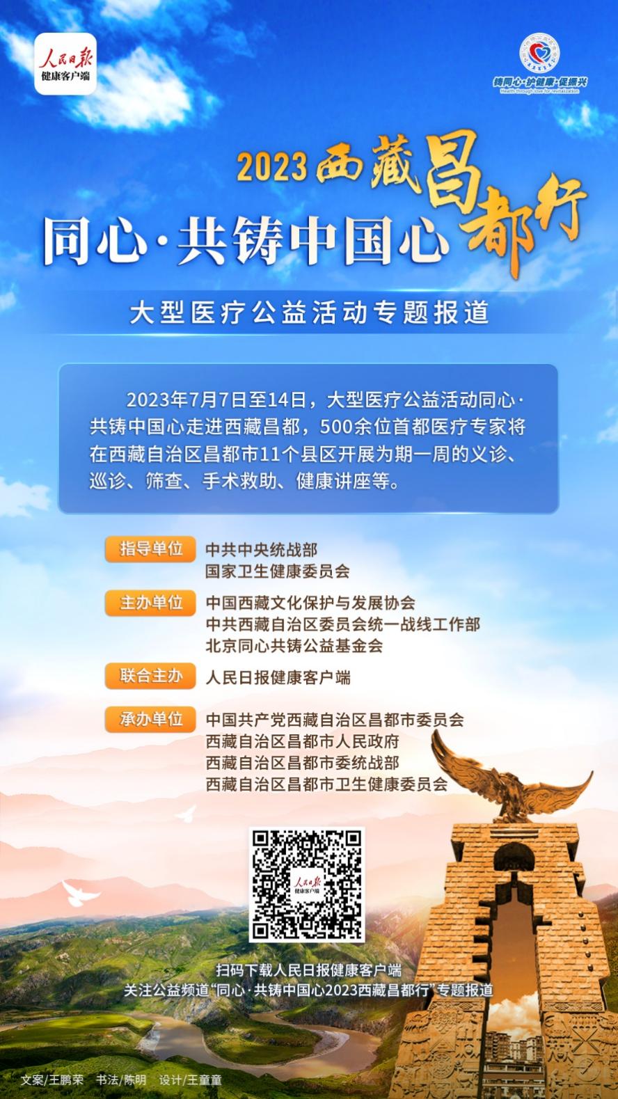 本次活動由中共中央統(tǒng)戰(zhàn)部、國家衛(wèi)健委指導(dǎo),中國西藏文化保護(hù)與發(fā)展協(xié)會、中共西藏自治區(qū)委員會統(tǒng)一戰(zhàn)線工作部、北京同心共鑄公益基金會主辦,人民日報健康客戶端聯(lián)合主辦,將結(jié)合當(dāng)?shù)亓餍胁W(xué)特點和醫(yī)療衛(wèi)生事業(yè)發(fā)展現(xiàn)狀,開展疾病篩查、義診巡診、高原手術(shù)、專業(yè)幫扶、健康科普和愛心捐贈等多種形式的健康幫扶工作。
