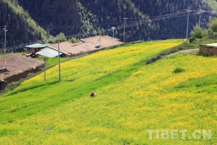 原來,這里有諸多野生動(dòng)物和人類和諧共處。天空不時(shí)飛翔過雄鷹,還有時(shí)而飛過的烏鴉、鴿子,狗兒在村子里自由來去,山坡上盡是悠閑吃草的牦牛……聽當(dāng)?shù)厝苏f,這里還經(jīng)常出現(xiàn)成群的獼猴、梅花鹿,在山澗飲水的野雞,甚至偶爾還有黑熊“光臨”村子……