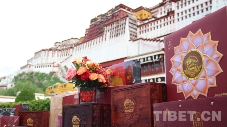 圖為姜氏家族向布達(dá)拉宮捐贈(zèng)金絲楠木盒典藏茶
