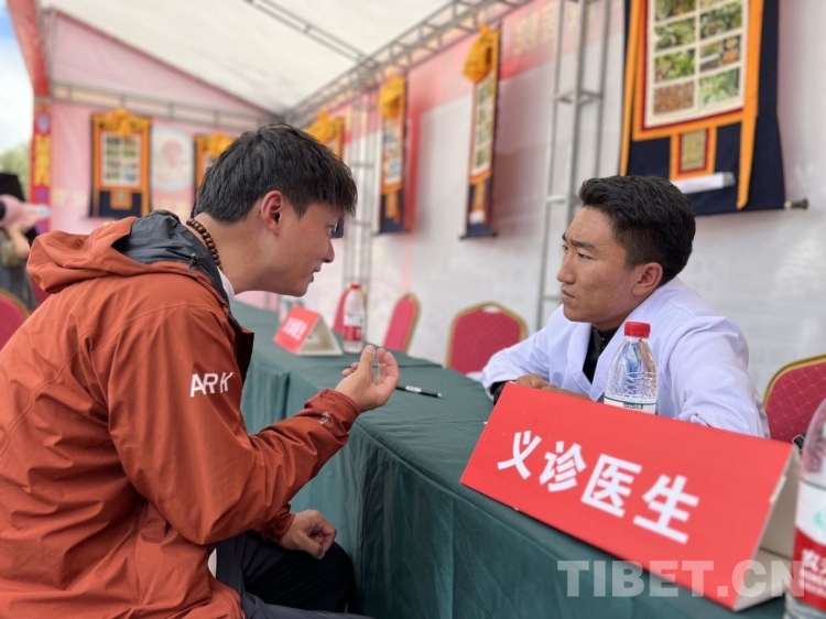 特色產品展銷會一旁是藏醫(yī)藥產業(yè)發(fā)展特色產品展示區(qū),設立義診區(qū)、藏藥成品藥區(qū)、昌都地道藥材區(qū)以及表現(xiàn)藏醫(yī)學內容的唐卡等區(qū)域供廣大游客免費尋醫(yī)問診、購買藏藥、了解藏醫(yī)文化。“我是重慶市紅十字會派到昌都做急救培訓的,這次在邦達機場、類烏齊、卡若區(qū)進行了急救培訓,原計劃是今天回去的,但是聽說今天昌都市迎來一年一度的茶馬文化藝術節(jié)就特意留下來,趁此機會想要深入了解昌都的民風民俗和購買當?shù)靥厣a品帶回家。”舒先生剛逛完特色產品區(qū)到義診區(qū)向昌都市藏醫(yī)院醫(yī)生尋醫(yī)問診。