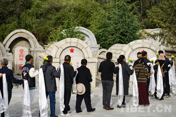 圖為參加活動的群眾代表向烈士敬獻鮮花和哈達(dá)。 攝影:趙振宇