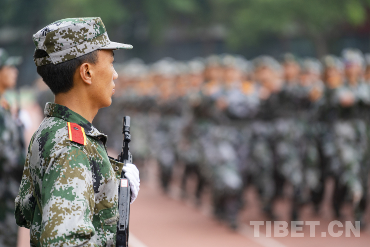 圖為西藏民族大學(xué)2023級學(xué)生軍訓(xùn)匯報(bào)表演現(xiàn)場 攝影:趙振宇