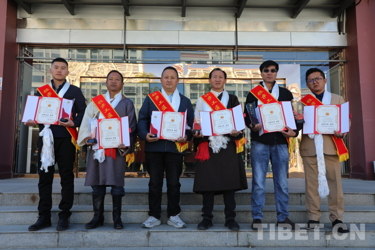 圖為相關(guān)領(lǐng)導(dǎo)與獲獎人員合影留念 攝影:格桑倫珠