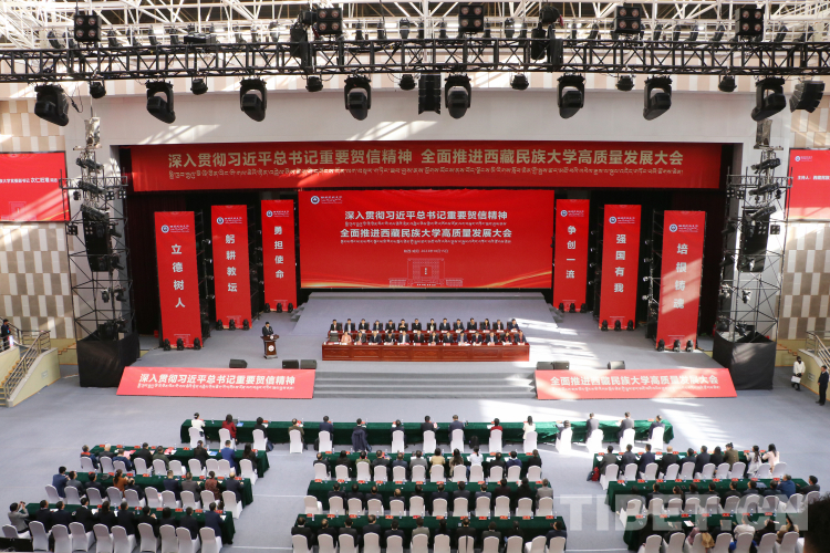 圖為深入貫徹習近平總書記重要賀信精神、全面推進西藏民族大學高質(zhì)量發(fā)展大會現(xiàn)場