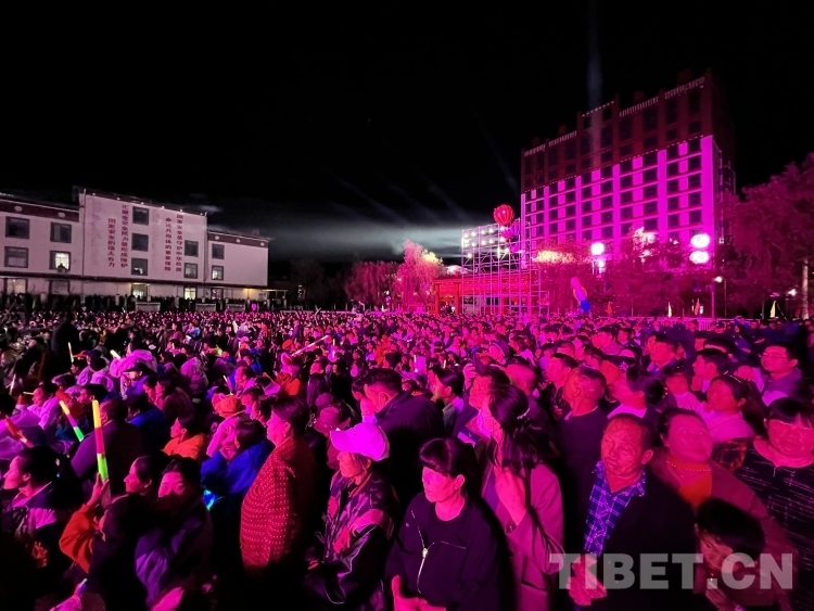 在演出現(xiàn)場,極具門巴族和珞巴族特色的節(jié)目,贏得現(xiàn)場觀眾的吶喊與鼓掌。天空下起了蒙蒙細(xì)雨,但絲毫沒有影響舞者們的發(fā)揮和臺下觀眾的心情,越來越多的墨脫群眾走向廣場,大家揮舞著手中的熒光棒和小國旗,盡情享受墨脫通路十年的這場“文化盛宴”。