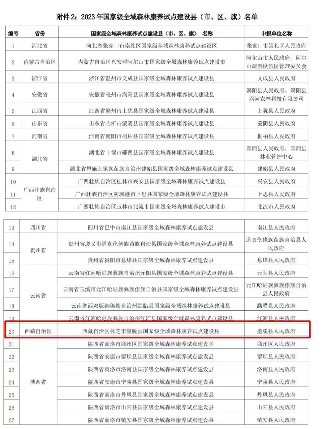 中國西藏網(wǎng)訊 11月22日,中國林業(yè)產(chǎn)業(yè)聯(lián)合會(huì)公示了2023年國家級森林康養(yǎng)試點(diǎn)建設(shè)單位名單,西藏自治區(qū)林芝市墨脫縣入選2023年國家級全域森林康養(yǎng)試點(diǎn)建設(shè)縣,系西藏自治區(qū)唯一入選的縣。